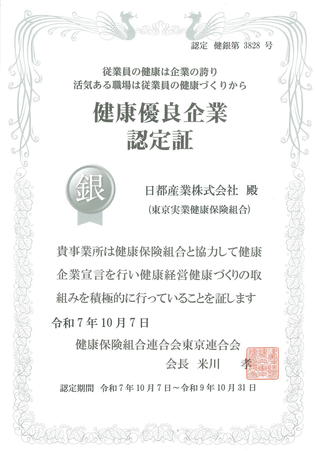 2025年 健康優良企業「銀の認定」を取得しました
